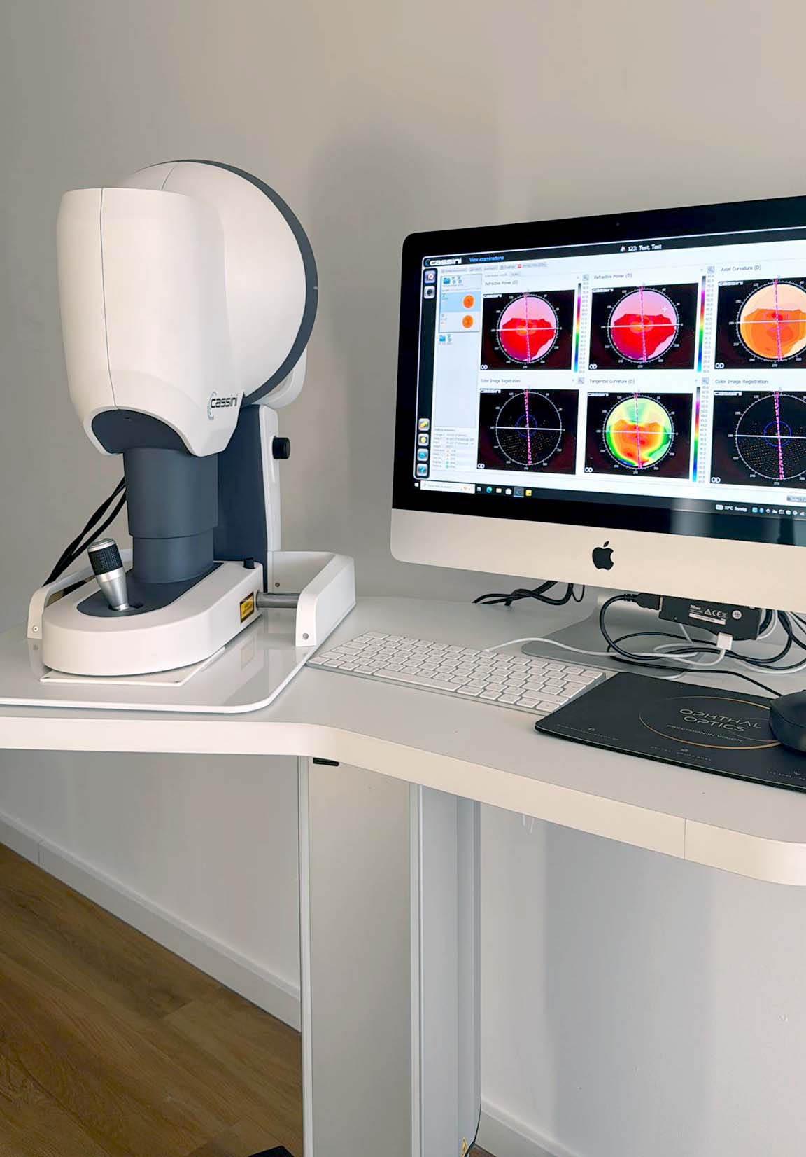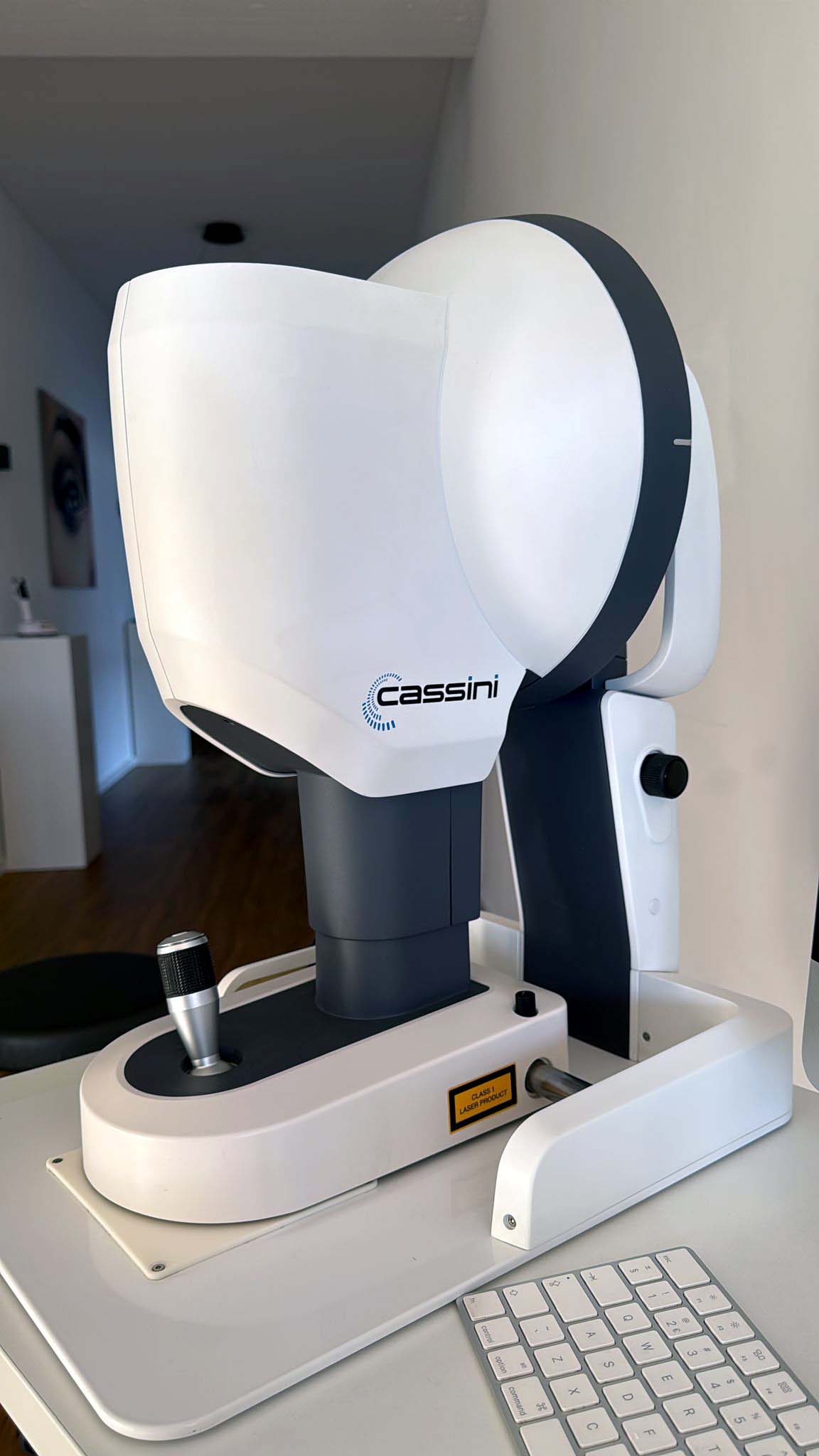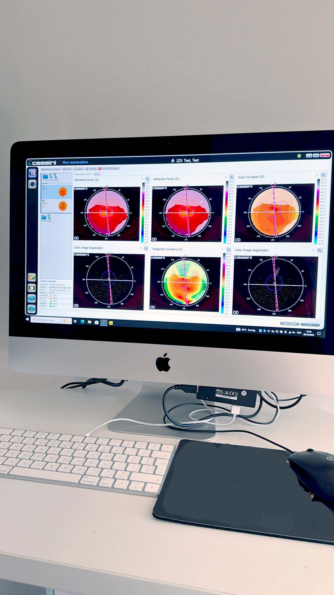 Inklusive Hubtisch, Apple iMac und installierter Cassini-Software. Die Topografiekartierung umfasst axiale, refraktive, tangentiale und Höhendaten.
